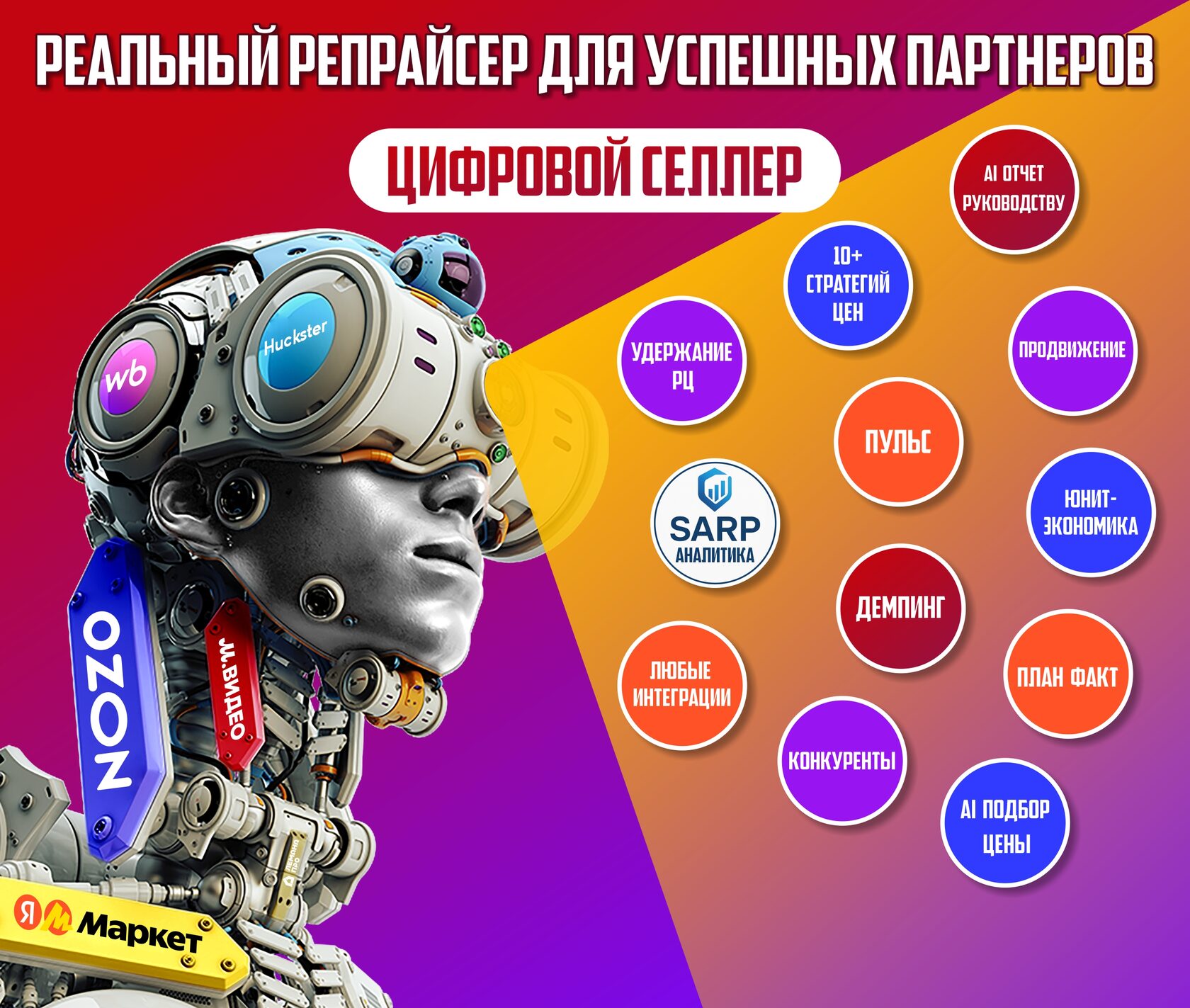 — это инструмент для автоматического управления ценами на маркетплейсах Ozon, Wildberries и ЯндексМаркет. Он в реальном времени реагирует на скидки маркетплейсов, находит акции с выгодными для вас условиями,выравнивает цены сделок на всех площадках, анализирует рынок и отслеживает цены конкурентов, обеспечивает маржинальность продаж с учетом юнит-экономики в реальном времени, учитывает заданные вами ограничения и установленные защиты от выгрузки невыгодных цен и с необходимой периодичностью сам обновляет стоимость ваших товаров.